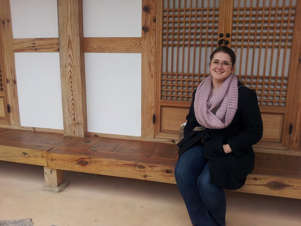 My sister chilling out in front of a traditional tea house in Gongju City.