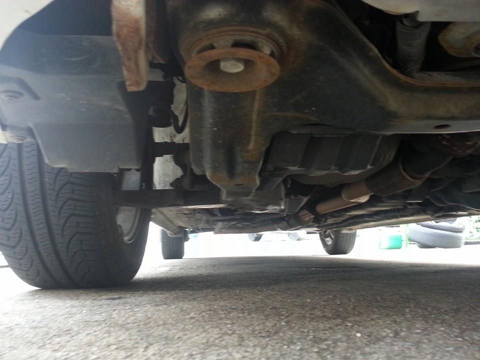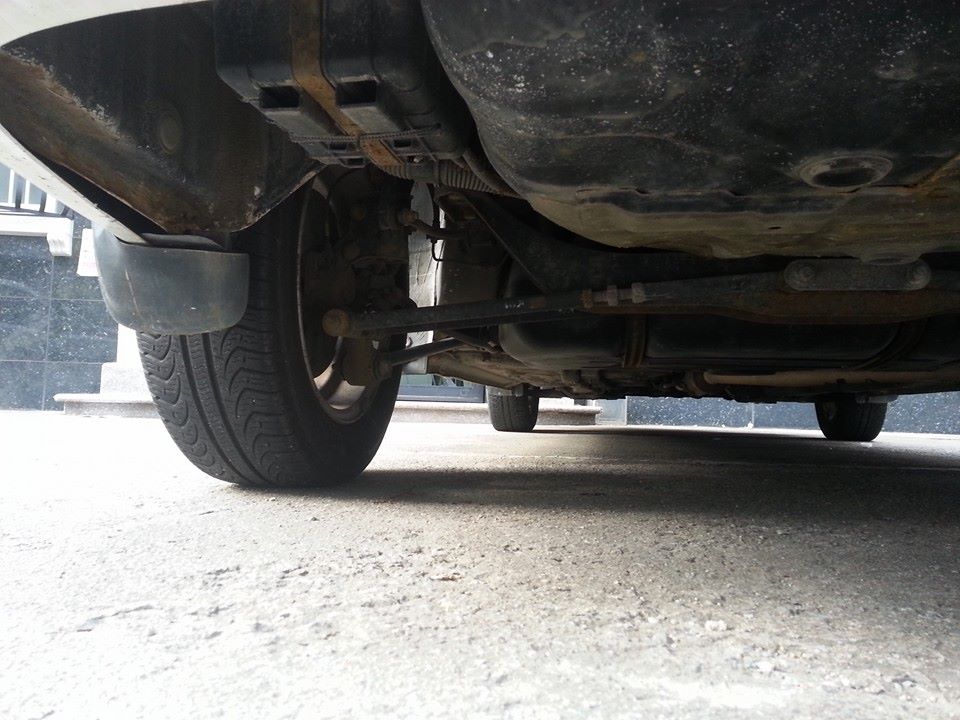 The Avante is going to be harder. As you can see, the front control arms are almost perfectly parallel to the ground, any lowering at all will cause huge problems. First, with the arms higher at the ball joint than the chassis, compressing will cause dramatic positive camber when cornering, which is exactly the opposite of the desired effect. Second, it will very quickly send my roll center underground, creating a huge lever and encouraging large amounts of body roll. In the short term, I simply cannot lower the car without ruining the handling.