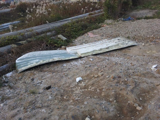 I could have bought sheet metal and patched them at moderate expense a few weeks later but that is a fool’s errand with one so skilled in ghetto fab as I. No, I would walk into the remains of a mostly demolished building next door, strip the steel from a large insulation panel and cut that up for strips. The only problem was that this insulation panel had been filled with plastic foam pellets, a million or so of which stuck to the metal.