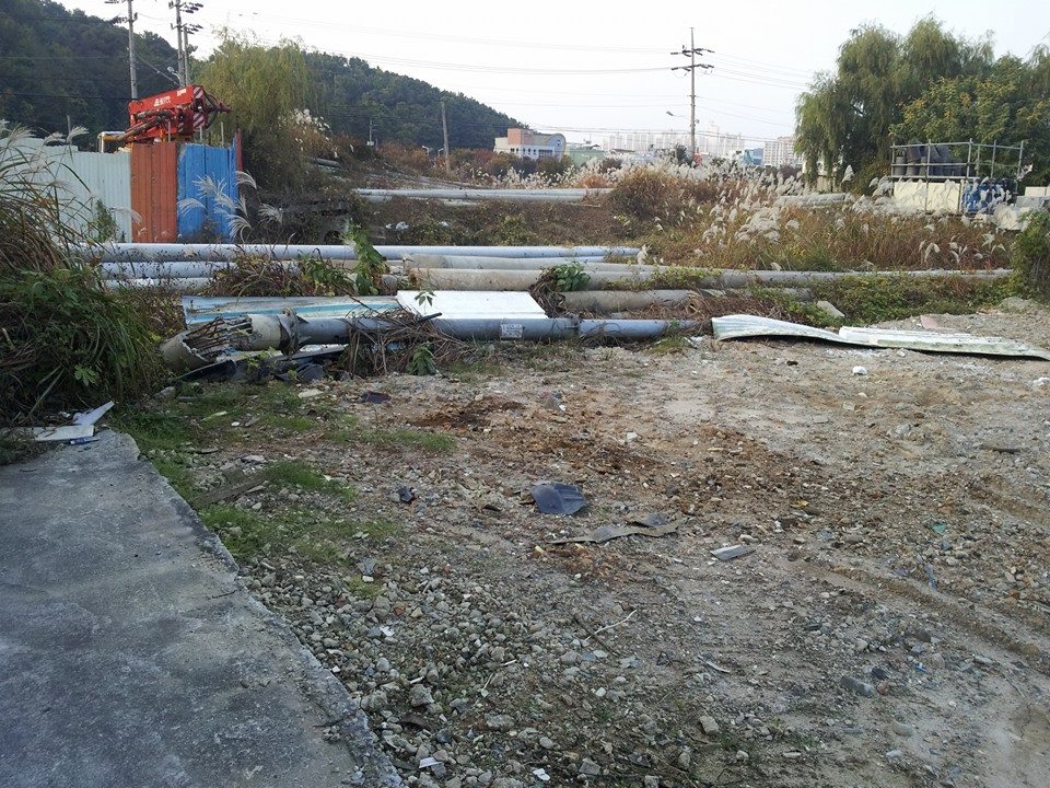 I could have bought sheet metal and patched them at moderate expense a few weeks later but that is a fool’s errand with one so skilled in ghetto fab as I. No, I would walk into the remains of a mostly demolished building next door, strip the steel from a large insulation panel and cut that up for strips. The only problem was that this insulation panel had been filled with plastic foam pellets, a million or so of which stuck to the metal.