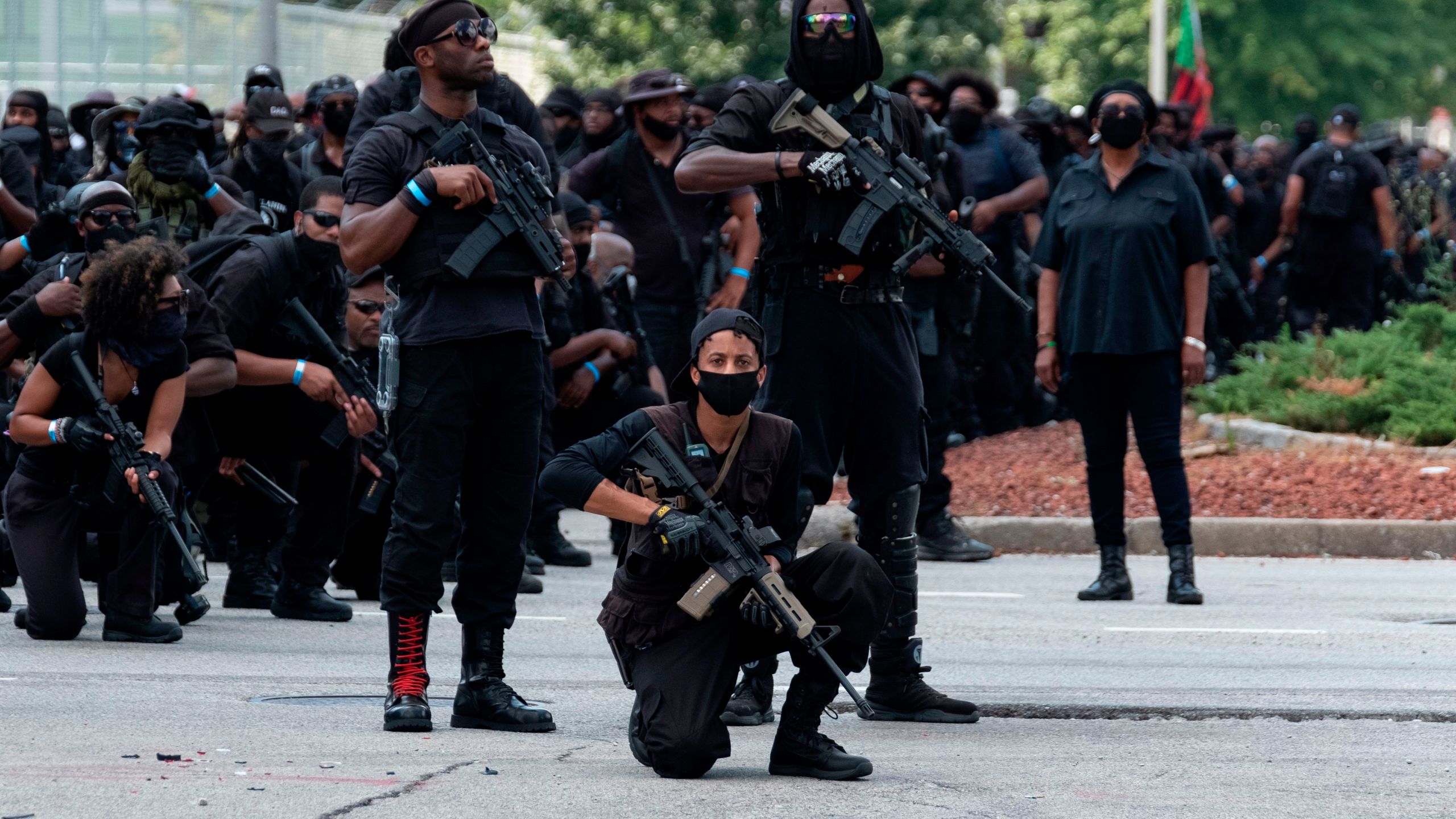 - Members of the “Not Fucking Around Coalition” (NFAC), an all black militia, march during a rally to protest the killing of Breonna Taylor, in Louisville, Kentucky on July 25, 2020. (Photo by Jeff Dean / AFP) (Photo by JEFF DEAN/AFP via Getty Images)